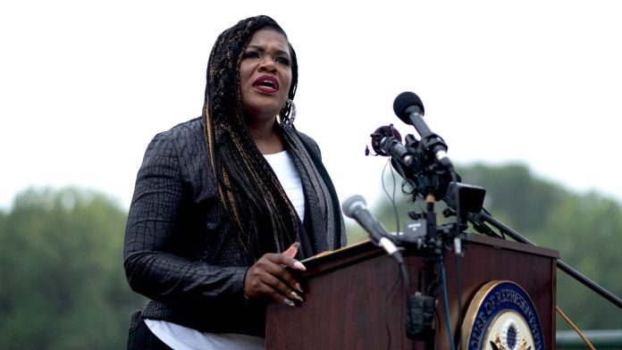 Asezata pe marginea unei canapele gri intr-un apartament din sticla si beton din cartierul Navy Yard din Washington, DC, luni dimineata, Cori Bush a fost imbracata in rolul unei activiste devenite congresmana, intr-o masca de fata impodobita cu „Breonna Taylor” si un tricou pe care scria „La fel de puternica ca femeia de langa mine”.