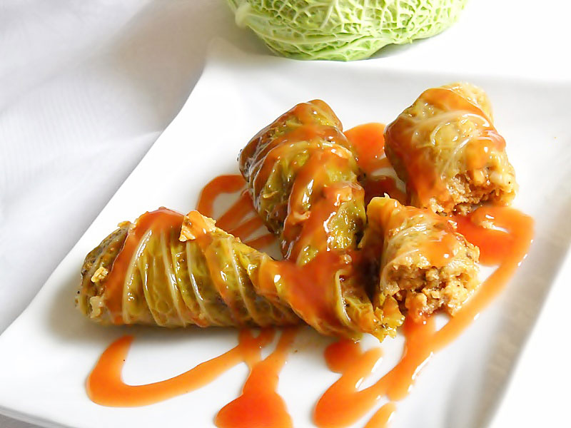 Sarmalutele din varza creata cu umplutura din carne de pui este o reteta chinezeasca, usor de preparat si care are 300 Kcal/portie.